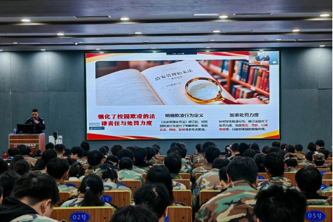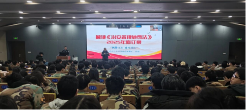 宣讲伊始,学生处负责人梁国锋以“法律是社会秩序的基石,更是学生成长路上的“安全护栏”为引,隆重介绍了张建警官的专业背景与宣讲资历,现场师生以热烈掌声对其到来表示诚挚欢迎。张建警官深耕公安一线多年,不仅具备扎实的法律专业功底和丰富的执法实践经验,更在青少年法治教育领域有着深入研究和独特教学思路,为师生系统解读了即将于2026年1月1日正式施行的《中华人民共和国治安管理处罚法》修订案。此次修订案由第十四届全国人大常委会第十六次会议于2025年6月27日表决通过,以中华人民共和国主席令第四十九号公布,涵盖六章144条,聚焦新型违法行为治理、正当防卫标准重构、执法程序优化等六大核心领域,旨在回应社会新挑战,提升法治化治理水平。