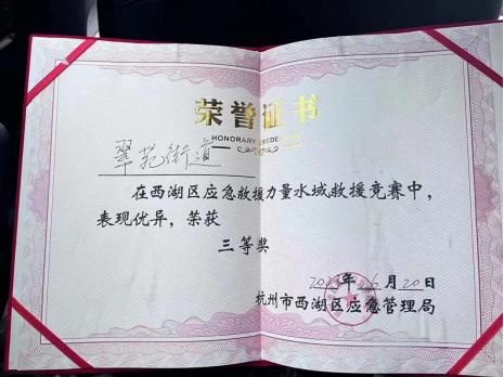 在杭州消防,李盈桥三个月参加了三次比武,和队员一起,为所在消防队夺得了西湖区综合应急救援队伍防汛防台技能大练兵大比武二等奖、西湖区应急救援力量水域救援竞赛三等奖等荣誉。